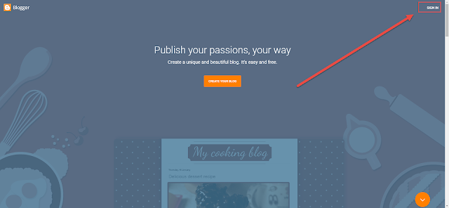Vào trang https://www.blogger.com/ sau đó nhấn Sign in để đăng nhập tài khoản gmail